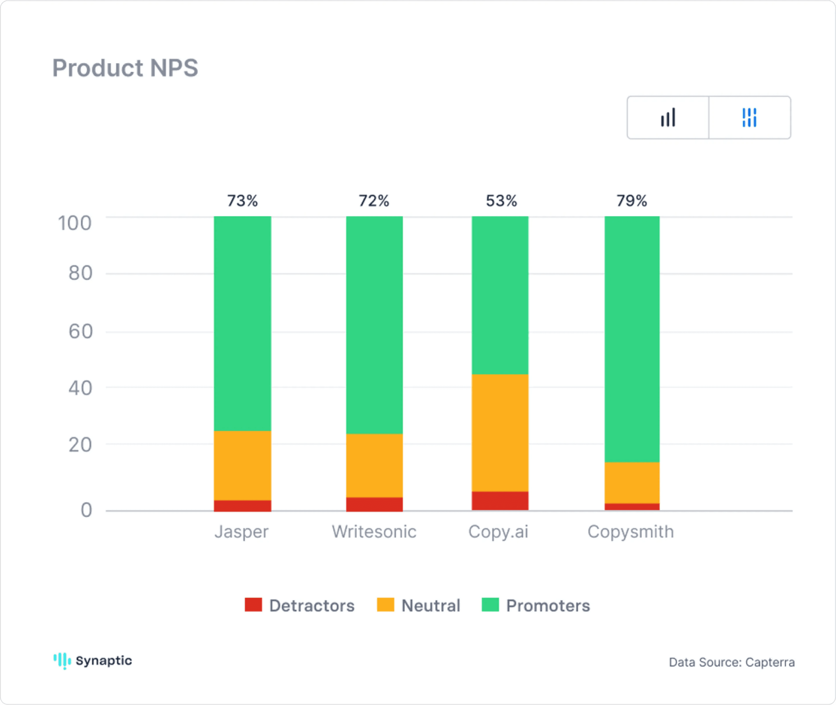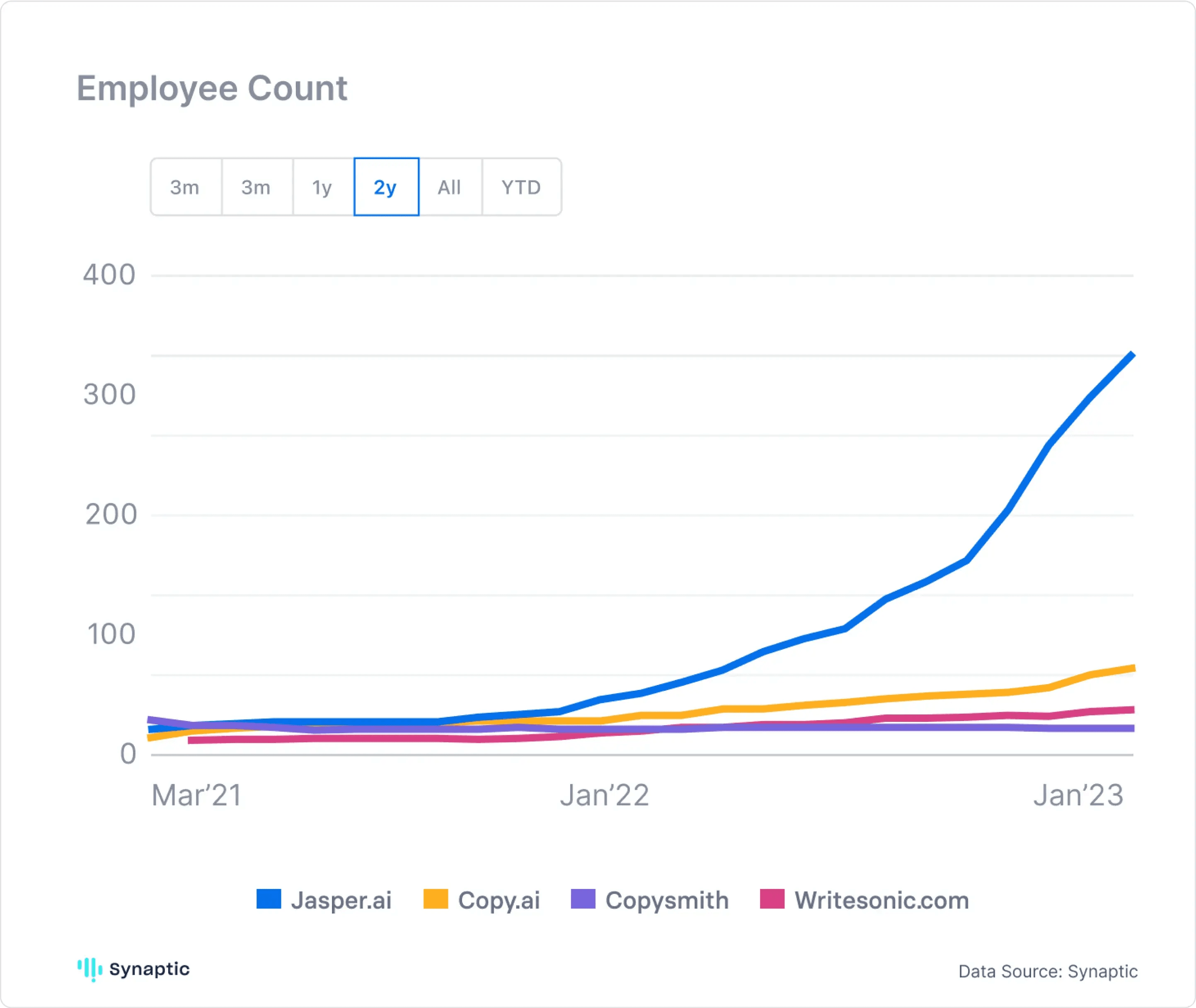 Competitive Landscape: Jasper, WriteSonic, CopyAI and Copysmith showing the strongest signs of adoption