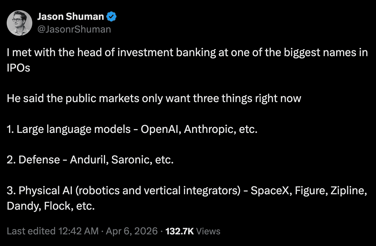 Huang is one of the most consistent bellwethers for where AI compute demand is heading next. And the numbers back him up. Robotics and Physical AI pulled in ~$40.7B of investment in 2025, up 74% year-over-year, which is nearly 9% of all global VC, outpacing every other deep-tech sector.