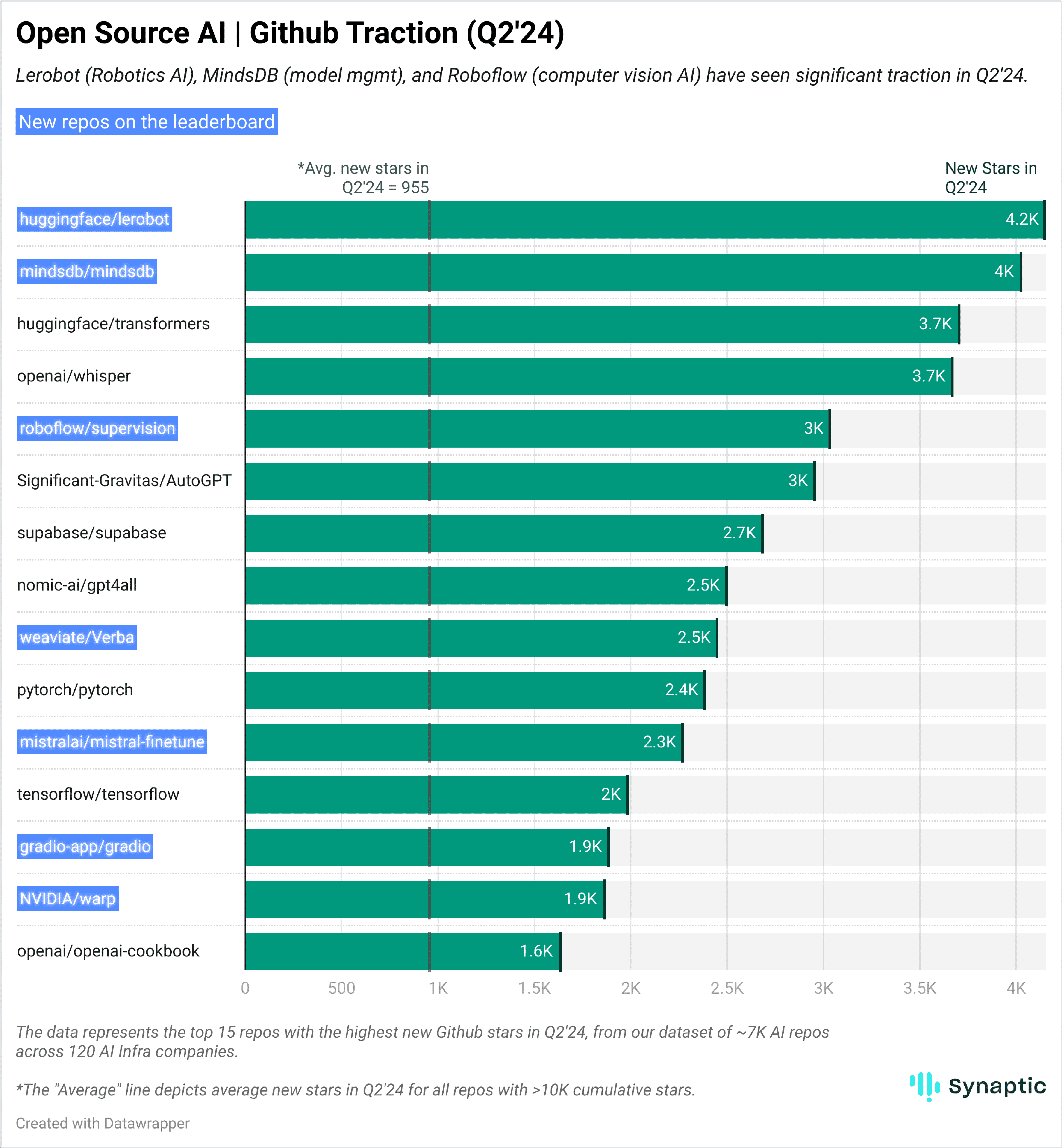 Github Traction: Huggingface, MindsDB and Roboflow have the hottest new repos in H1 2024