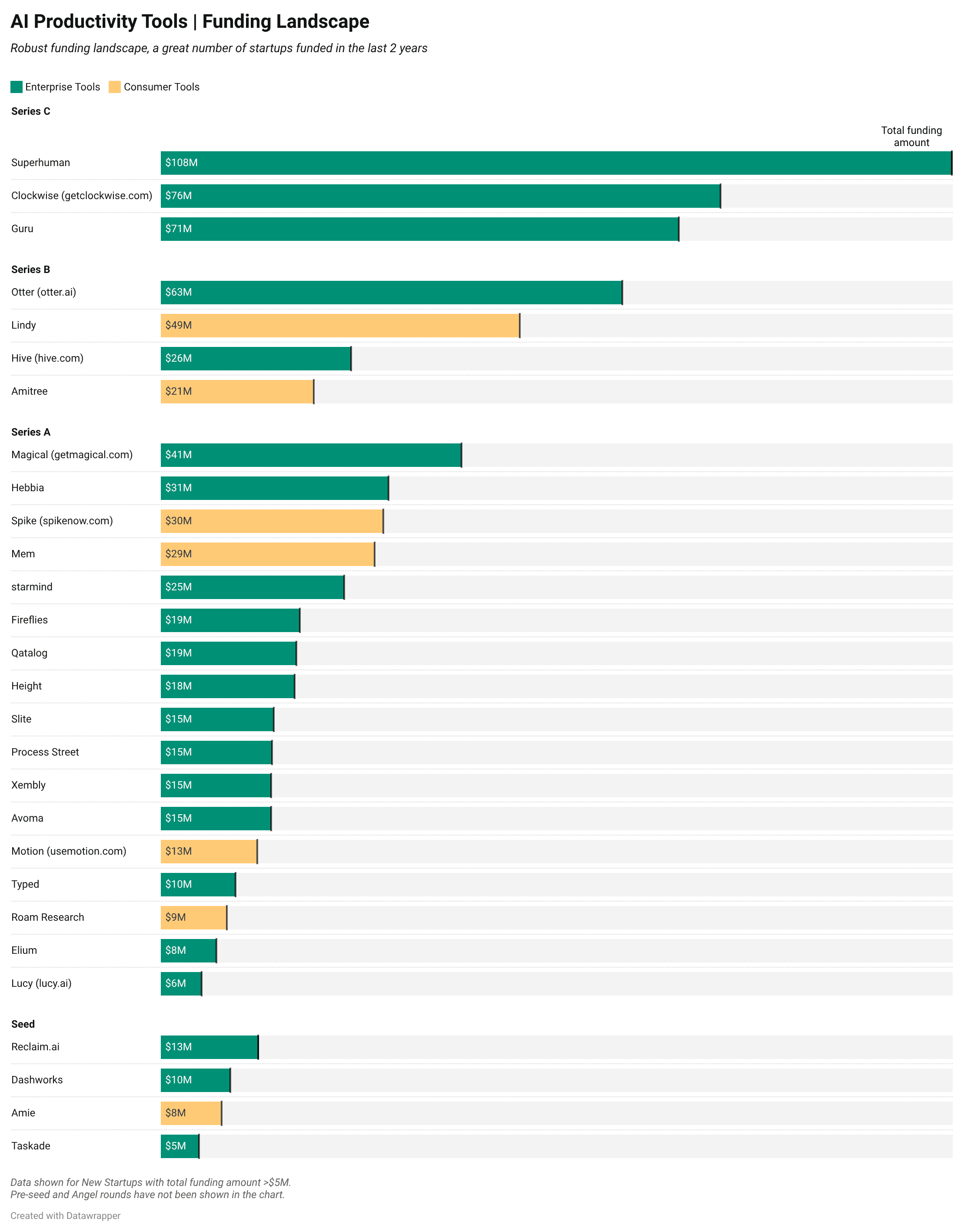Mature startups / unicorns like Airtable, Clickup, Calendly and Coda have received >$200M of funding.